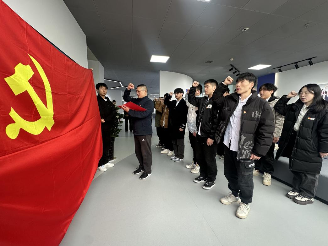首先,党支部书记许怡学带领土木建筑工程学院新入党的学生党员进行入党宣誓。
